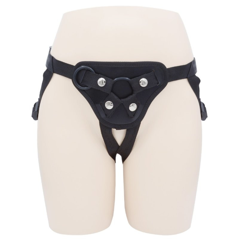 Dildo harness, melynek segítségével a kedvenc dildod tudod használni. 1 db fém és 2 db elasztikus gumi karikával melyeket a dildo méretéhez tudsz választani. De tetszőlegesen saját karikát is tudsz hozzá csatlakoztatni, Így bármilyen méretű dildoval tudud használni.